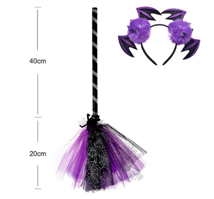 Acessório Vassoura e Tiara Morceguinho Halloween