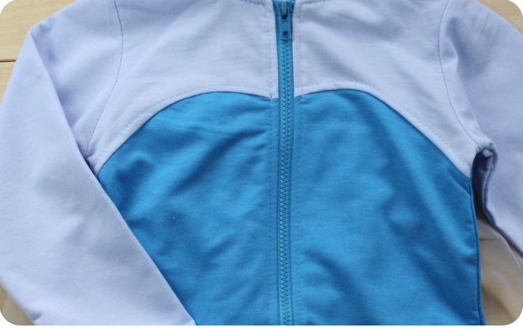 Casaco com zíper na frente e capuz nas costas.