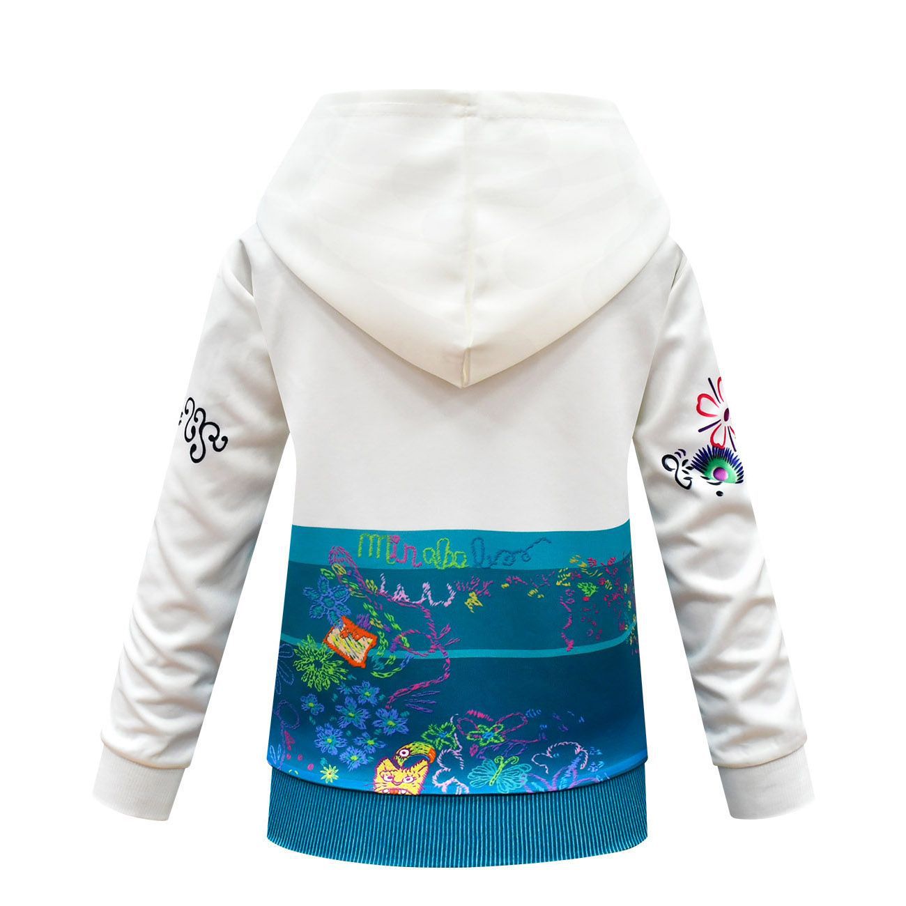 Casaco com zíper na frente e capuz nas costas. Cores vivas e com tema de Encanto da famíia Madrigal.