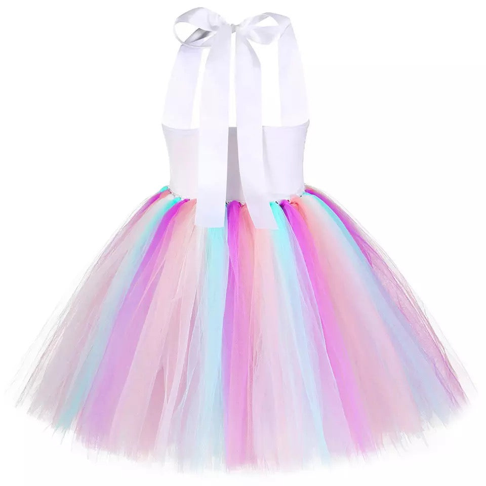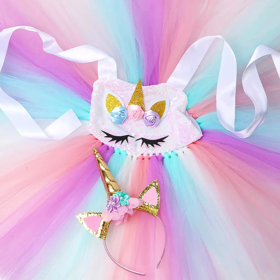 Meninas princesa brilhante unicórnio vestido tutu crianças dos desenhos animados com led vestidos brilhantes asas headband traje de palco para festa de menina candy color