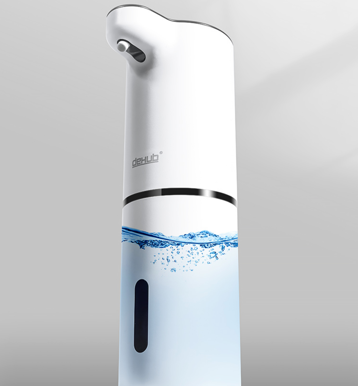 Possui um sensor de aproximação que ejeta a espuma, limitando o contato com a saboneteira evitando contaminações.