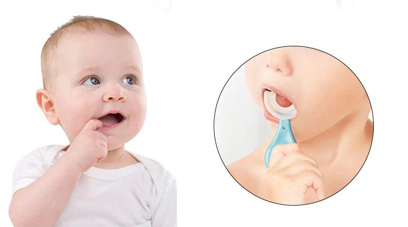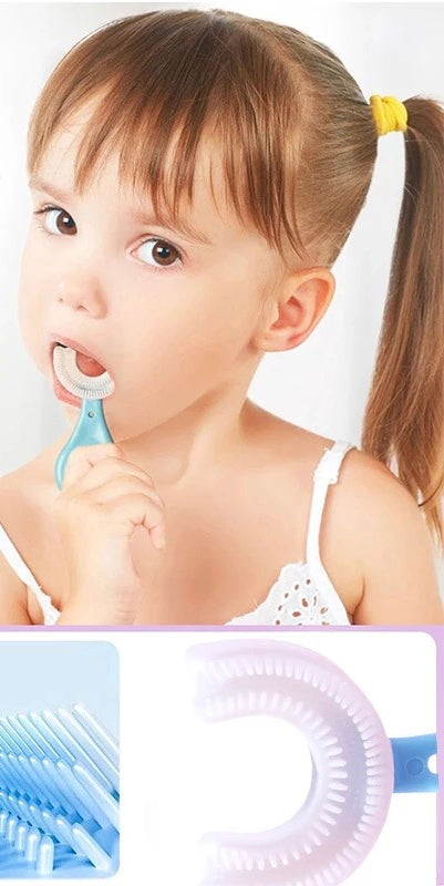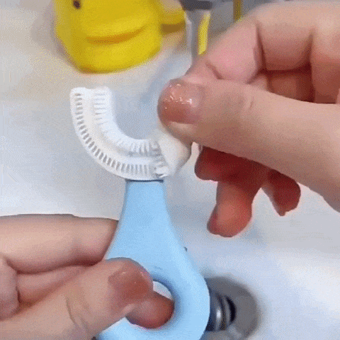 A escova de dentes em forma de U torna muito mais fácil escovar os dentes das crianças sem ter que abrir a boca ou lutar contra as mordidas.