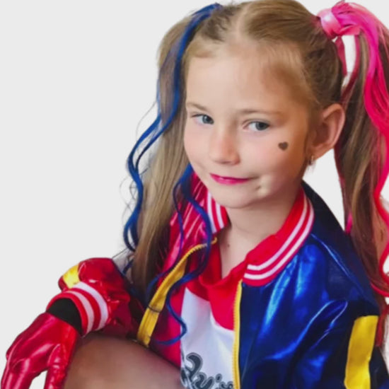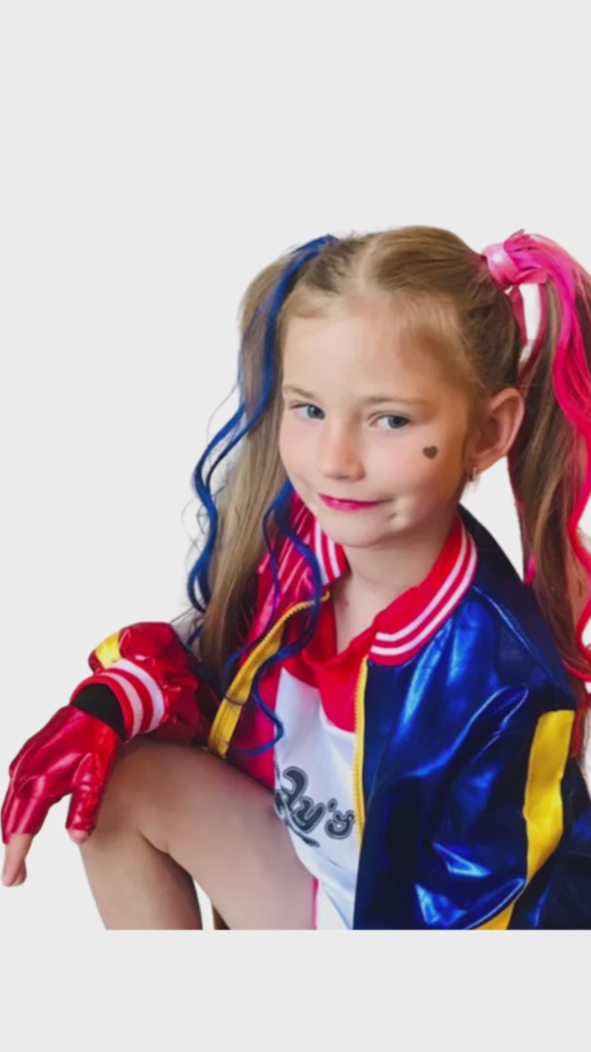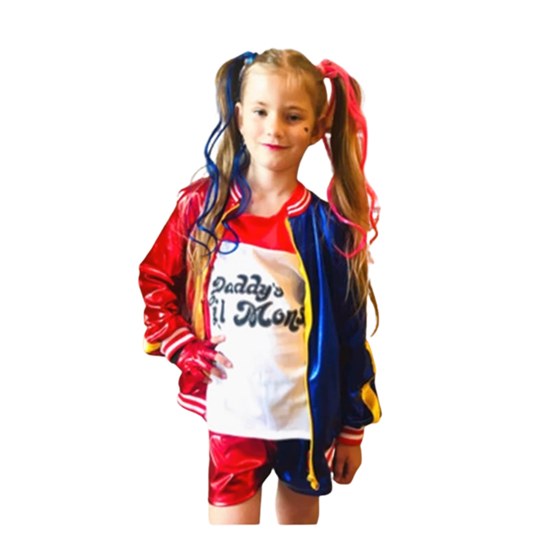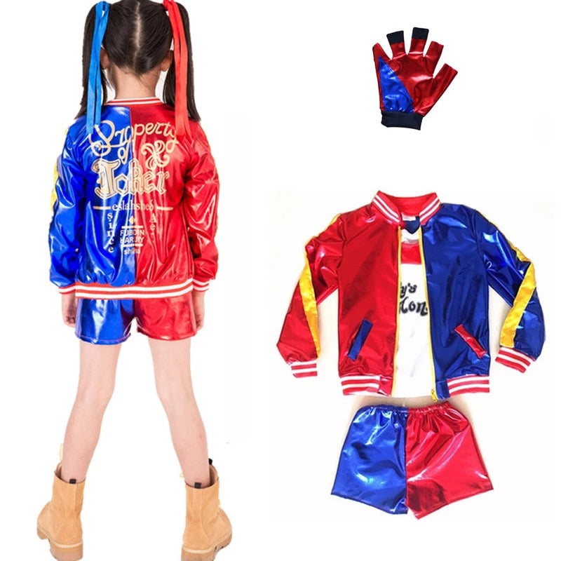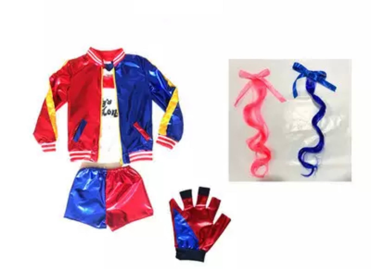 Produto contém jaqueta, blusa, shorts, uma luva e fitas de cabelo.