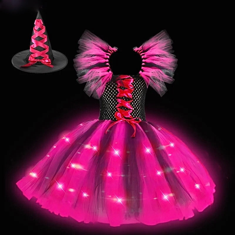 Esta opção é de um halloween iluminado é uma nova versão da nossa fantasia de bruxinha preferida por todas as meninas! Encantador, confortável e bem elegante.