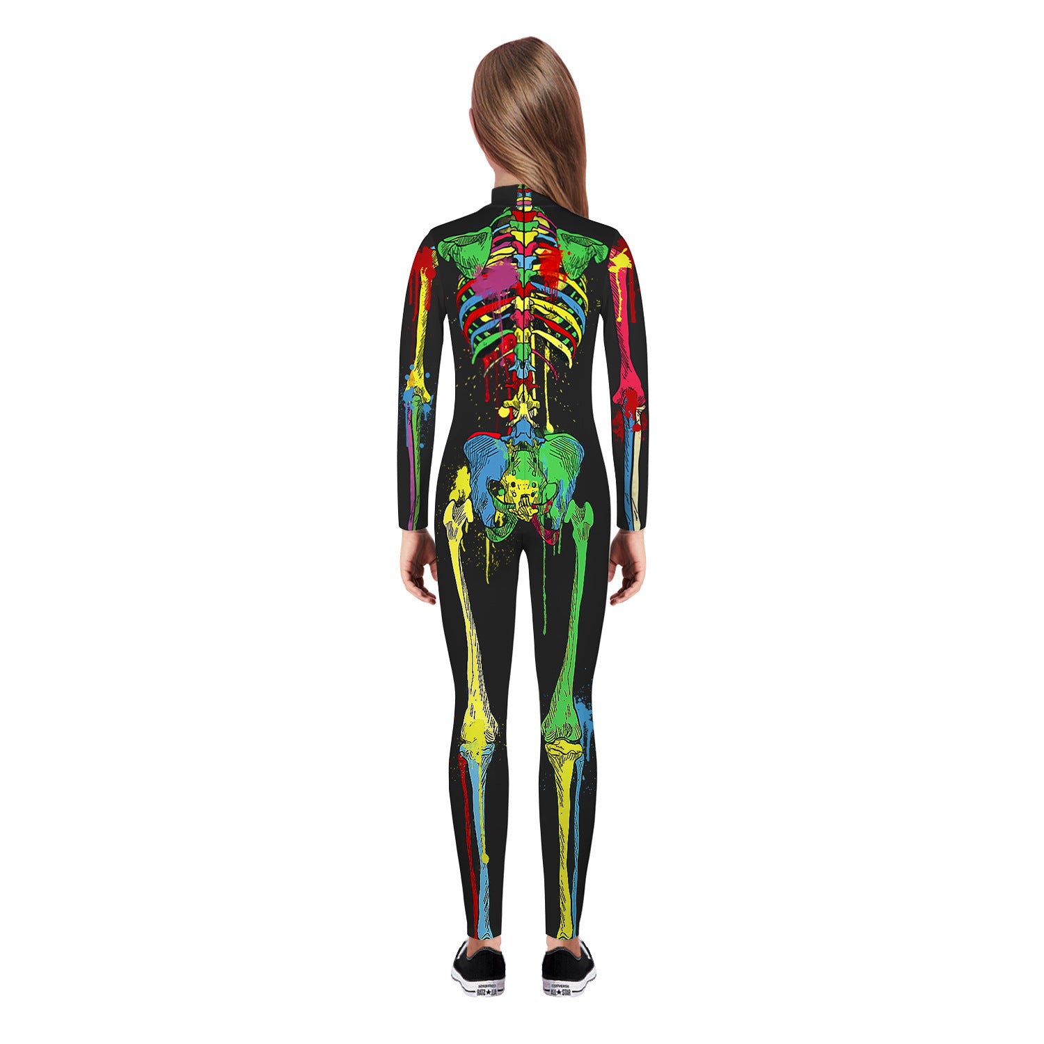Novo esqueleto de arco-íris roupa de menina para crianças pequenas fantasia funcional de osso perfurado fantasia de halloween para crianças 2022