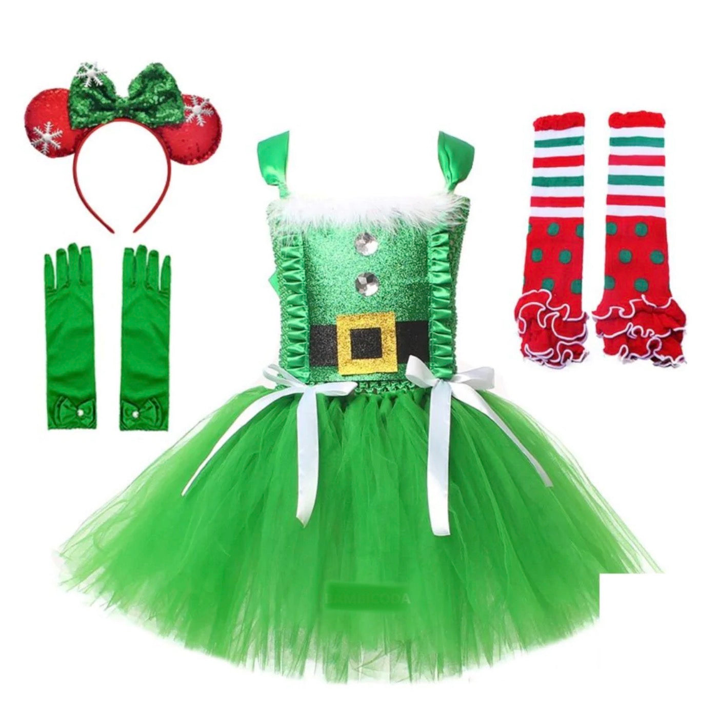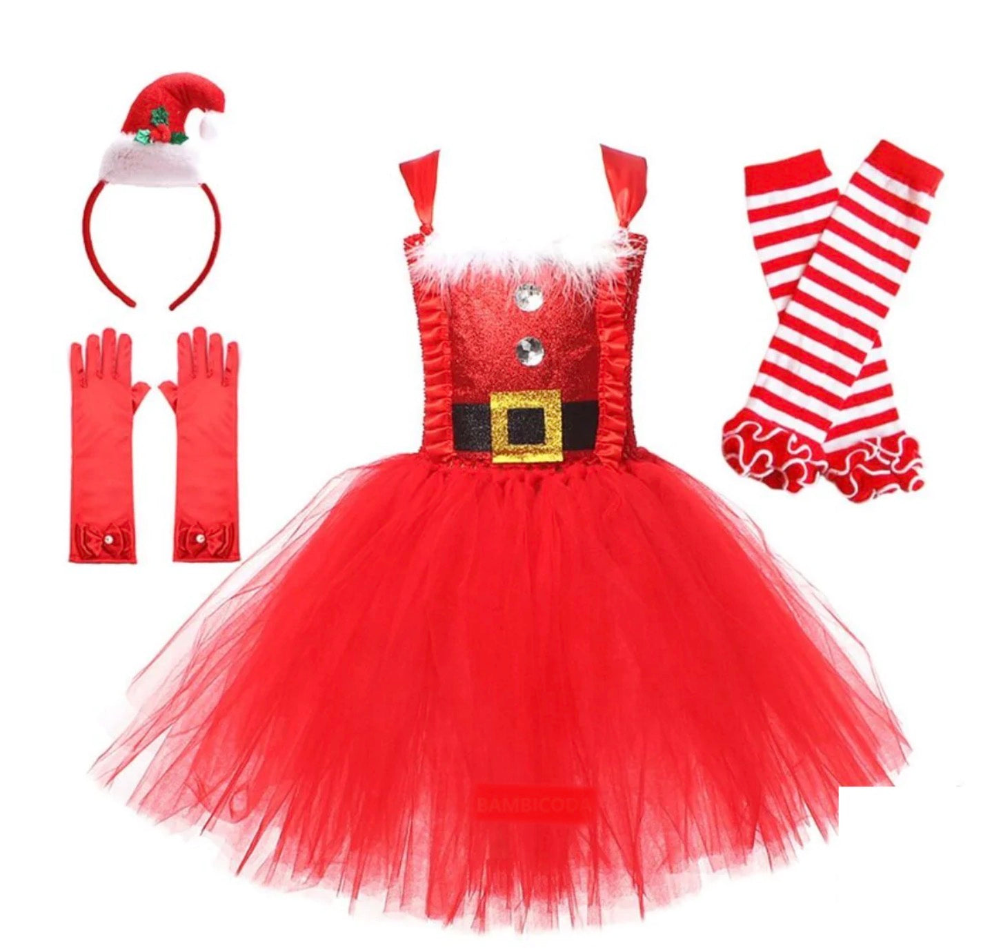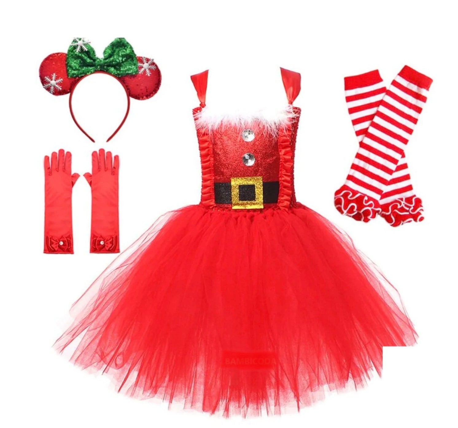 Fantasia de natal para meninas, traje de rena para crianças, rudolph, nariz vermelho, vestido de festa, tutu com faixa para cabeça