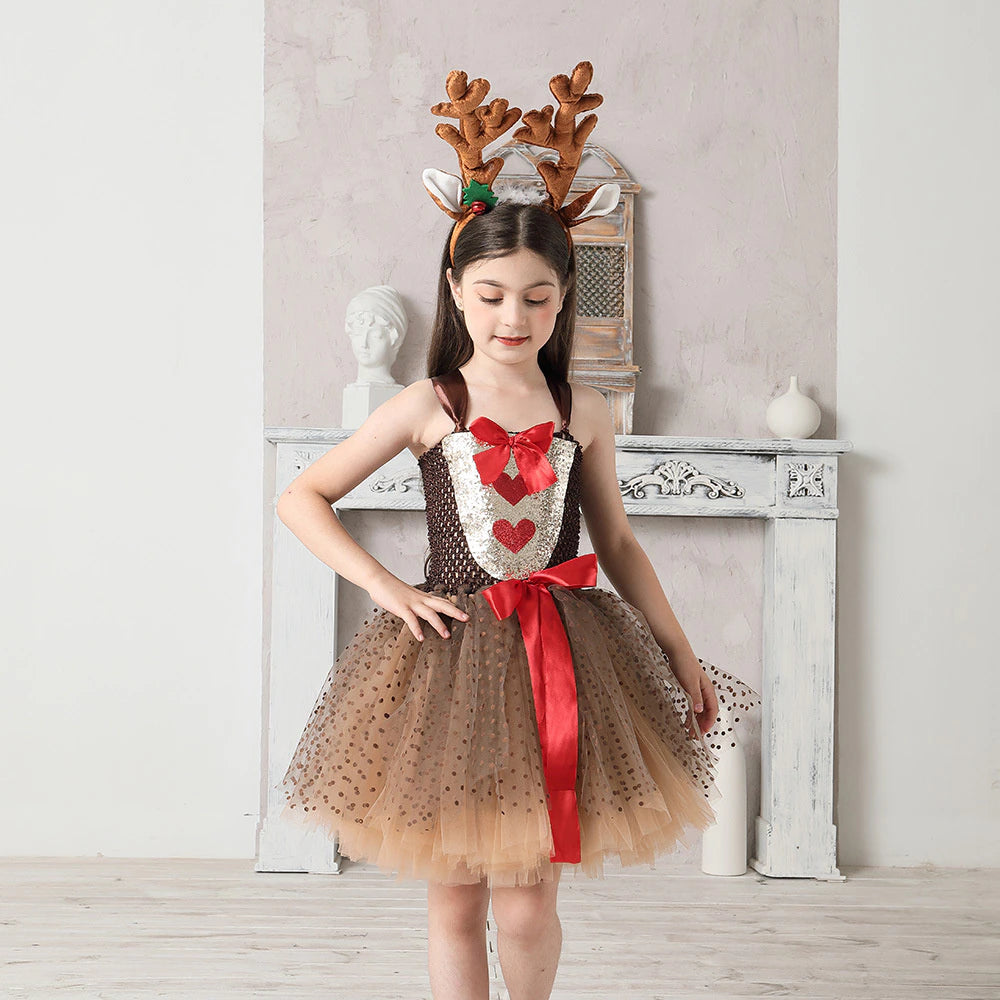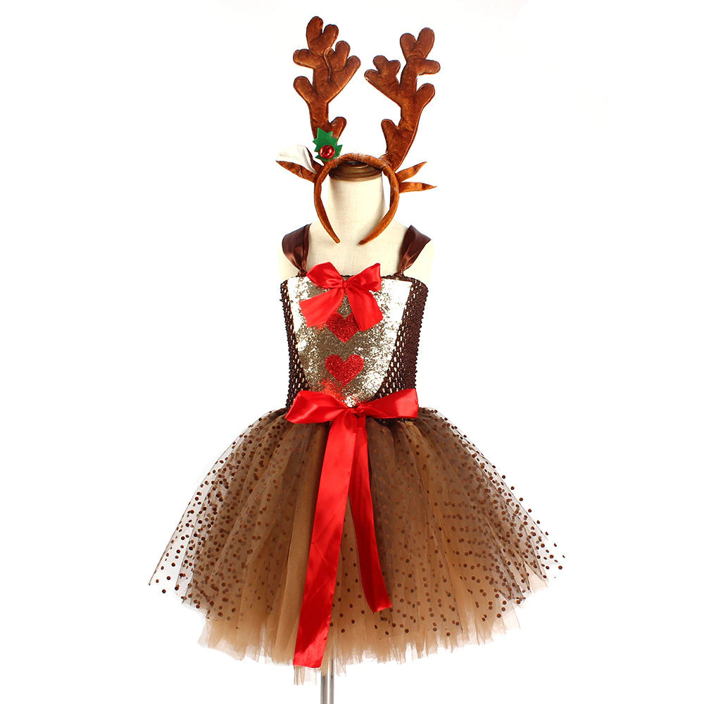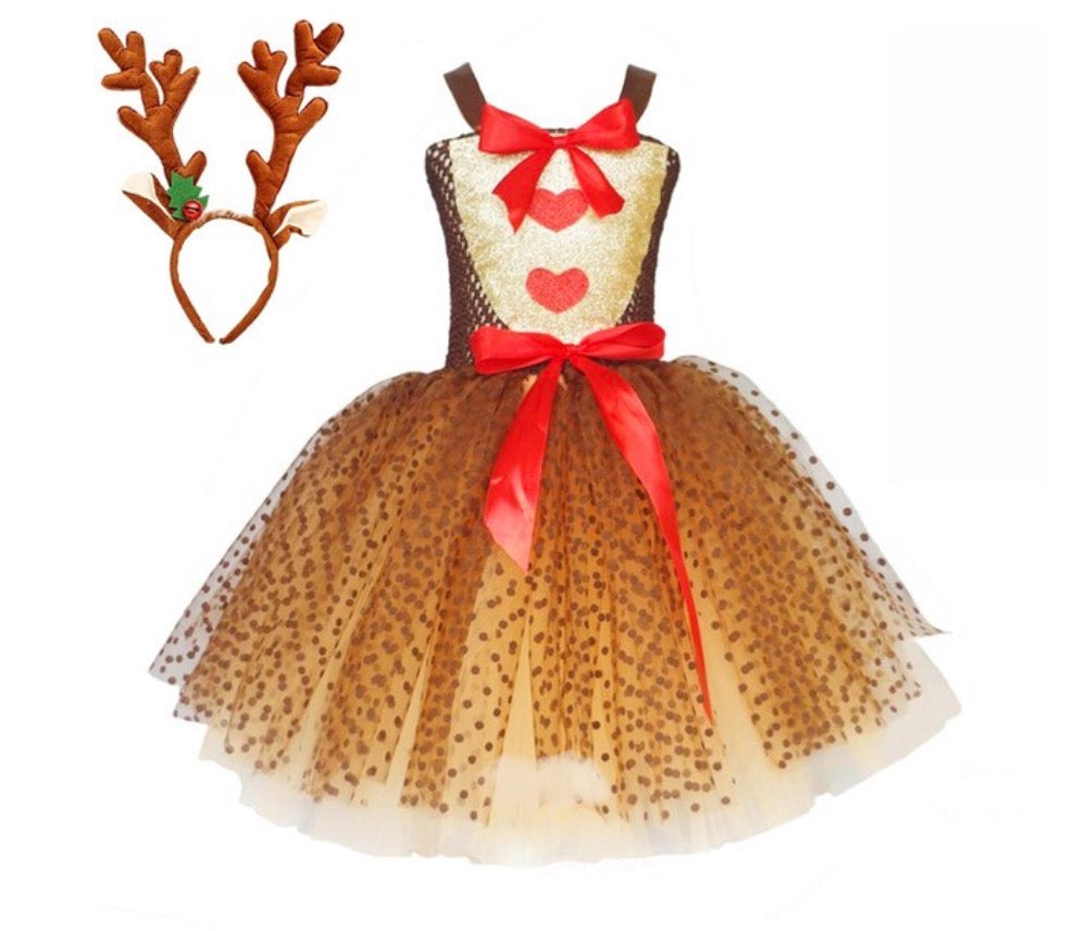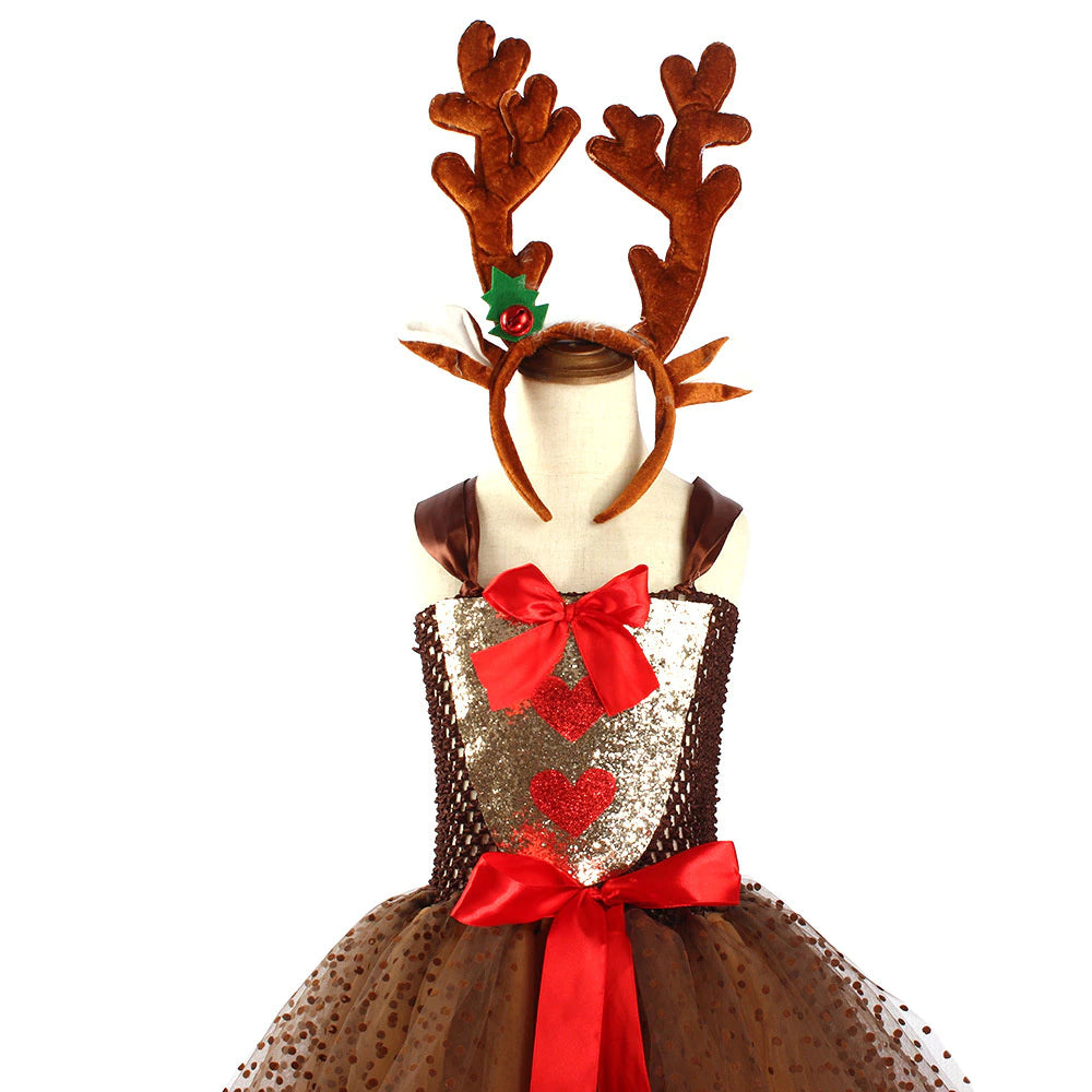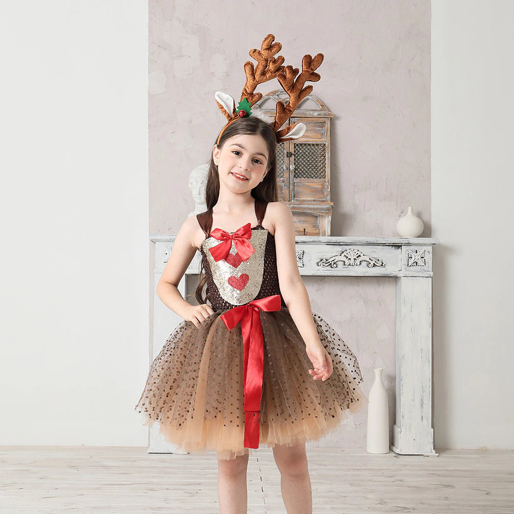 Transforme o natal da sua filha em algo mágico e divertido com essa fantasia encantadora de rena.