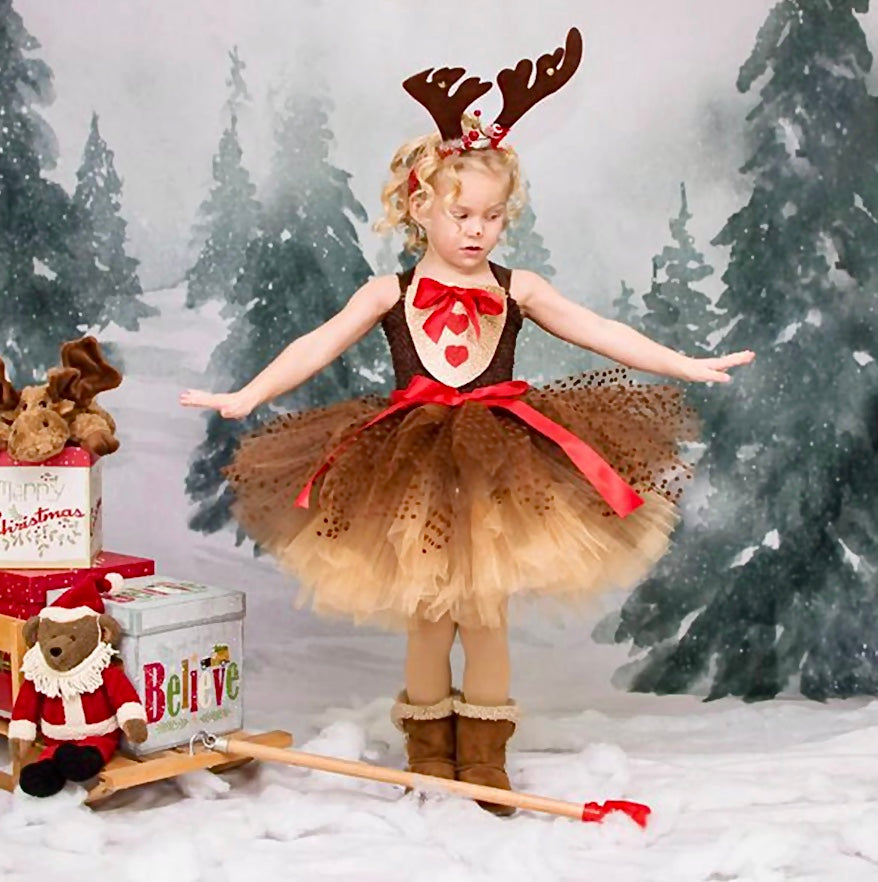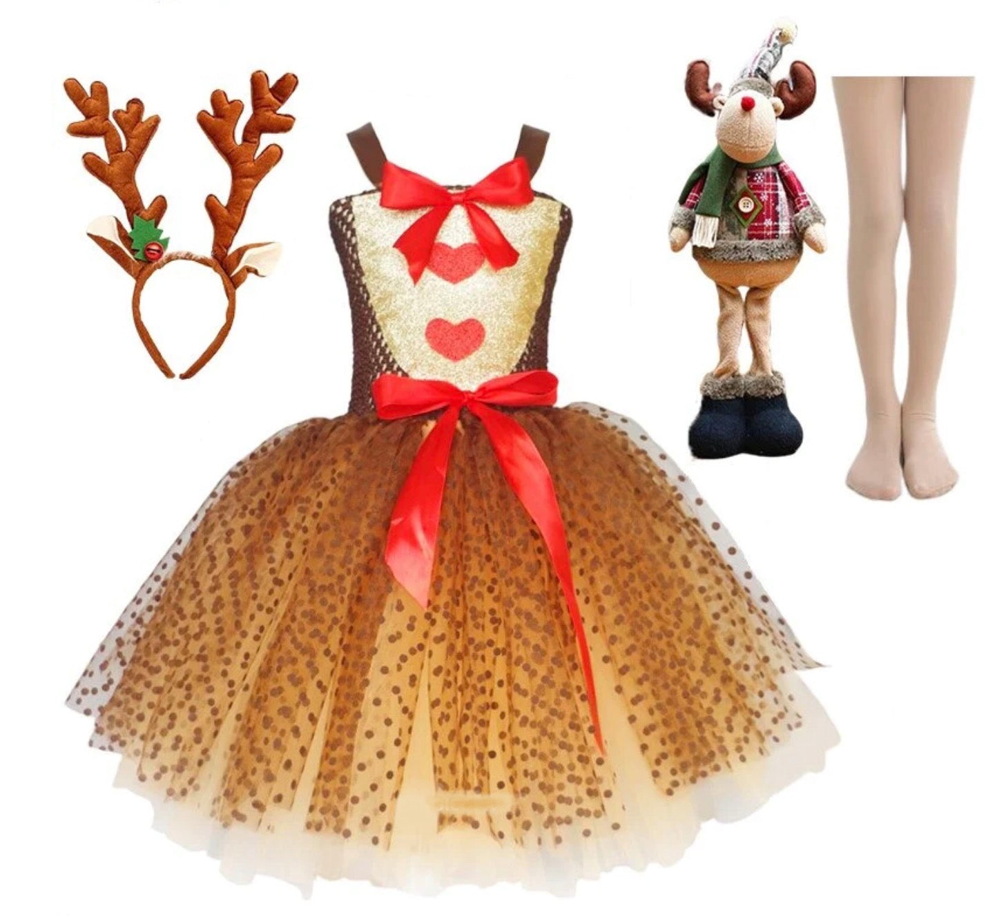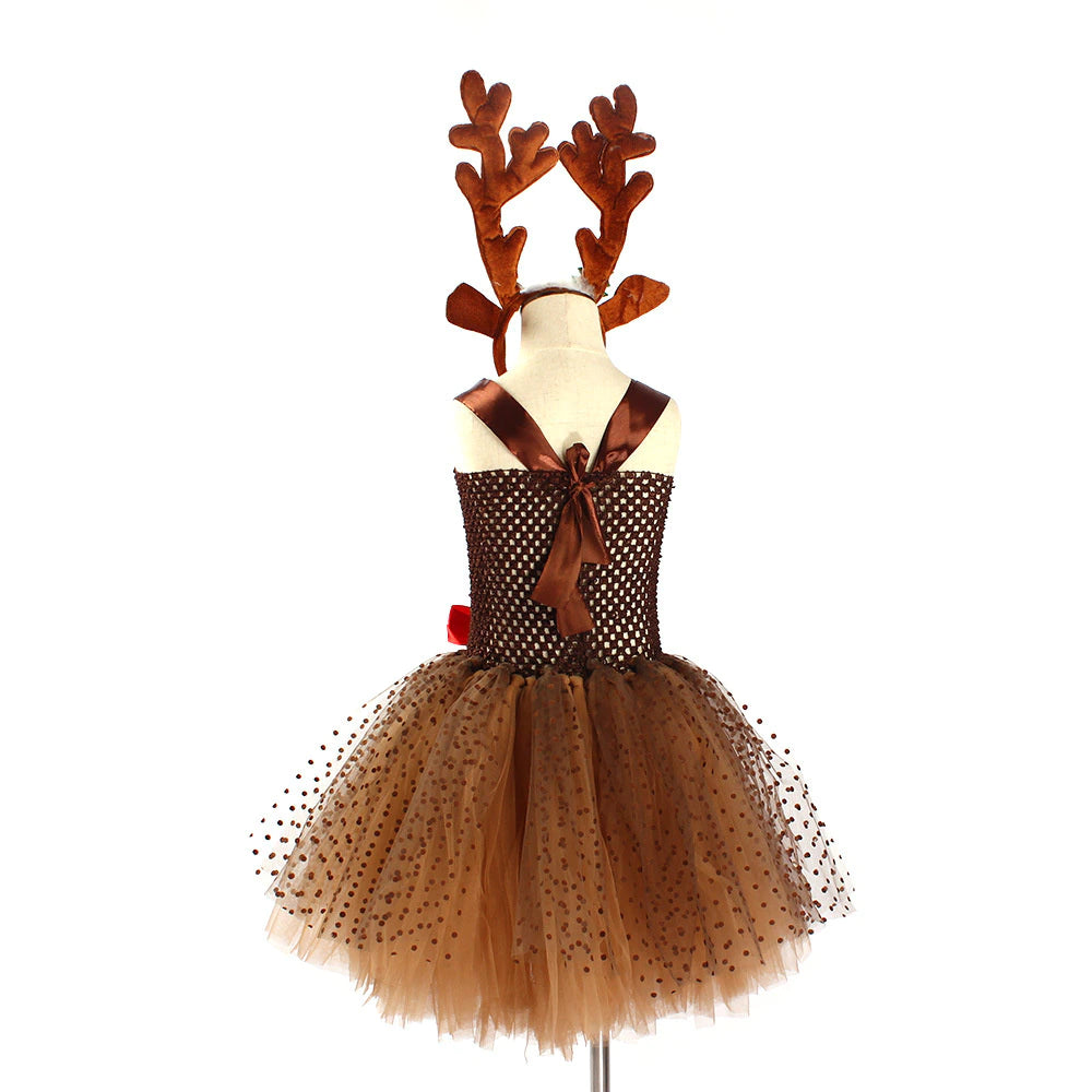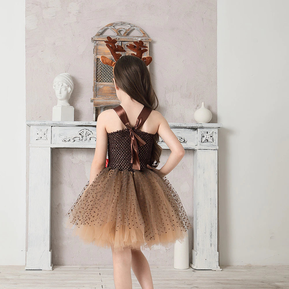 Transforme o natal da sua filha em algo mágico e divertido com essa fantasia encantadora de rena.