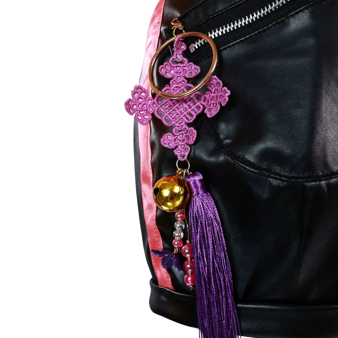 Pingentes decorativos laterais em estilo oriental, adicionando um toque único e sofisticado.