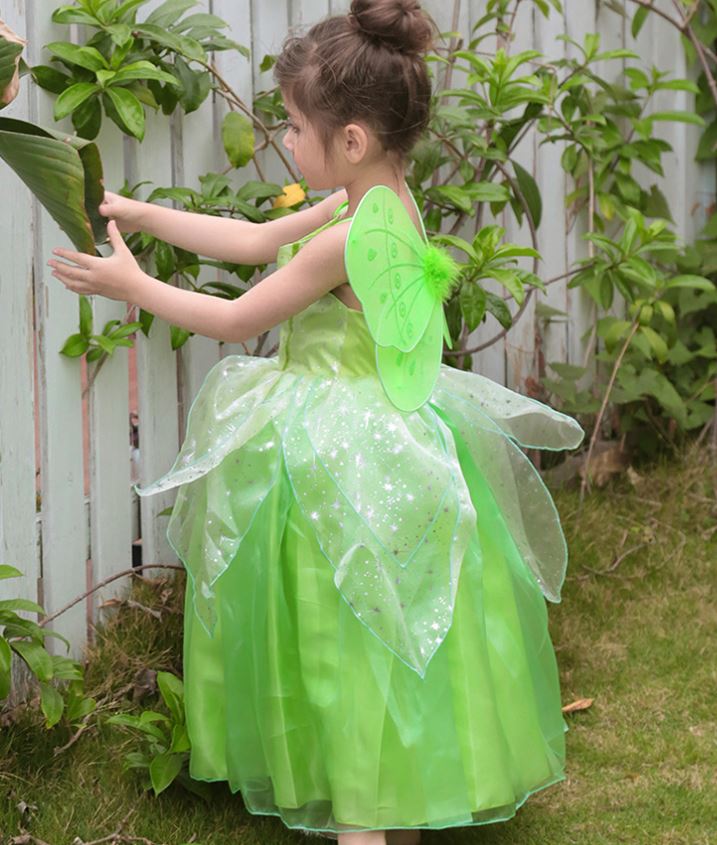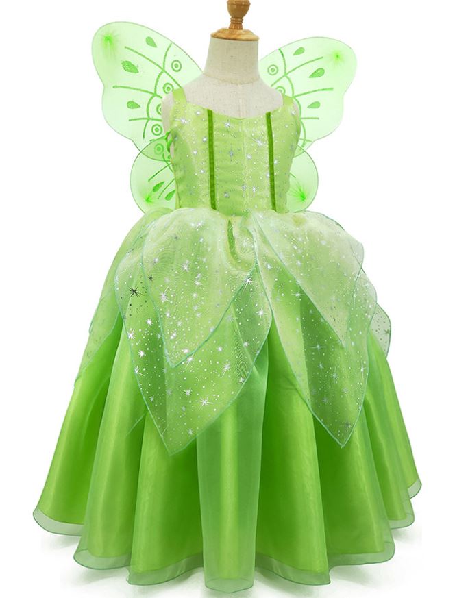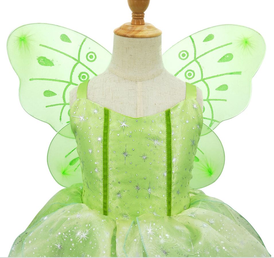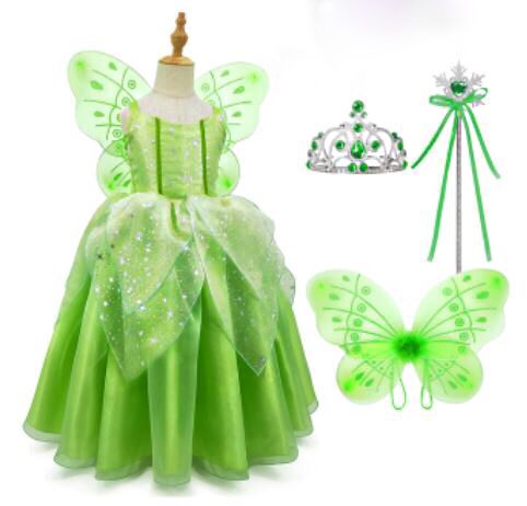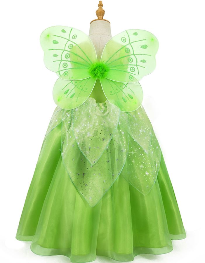 Produto contém vestido, cetro, asa de borboleta e coroa.