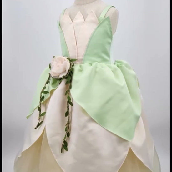 Tiana princesa vestido a princesa e o sapo cosplay flor fora do ombro roupas para a menina de halloween crianças festa de natal