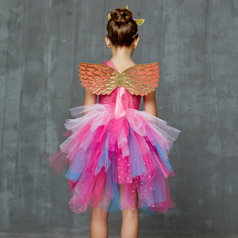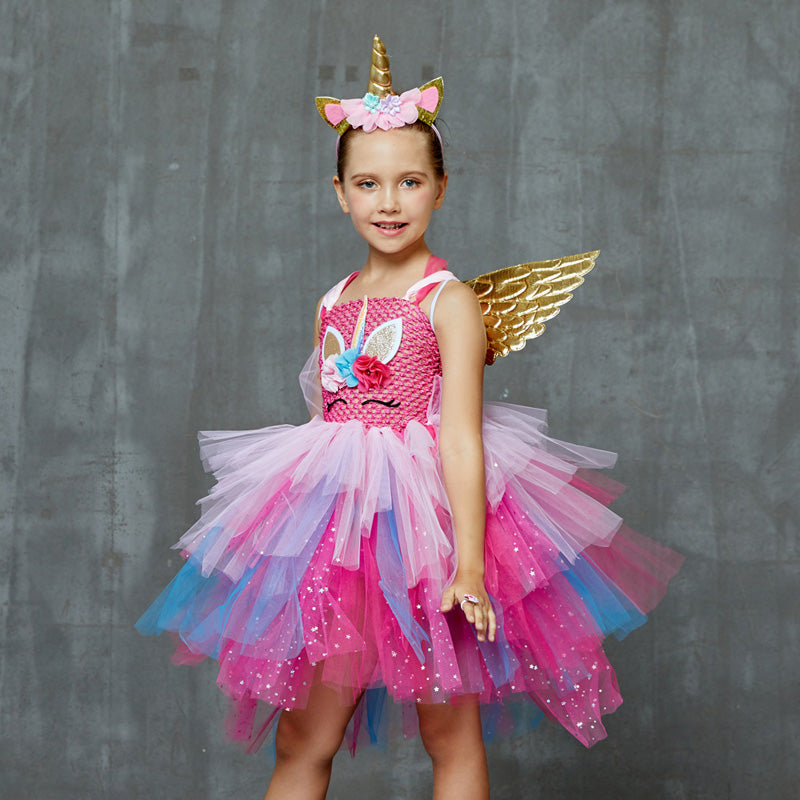Vestido tutu infantil para meninas, unicórnio brilhante, princesa, desfile, flor, festa, com tiara, asas, halloween, cosplay, vestido de menina