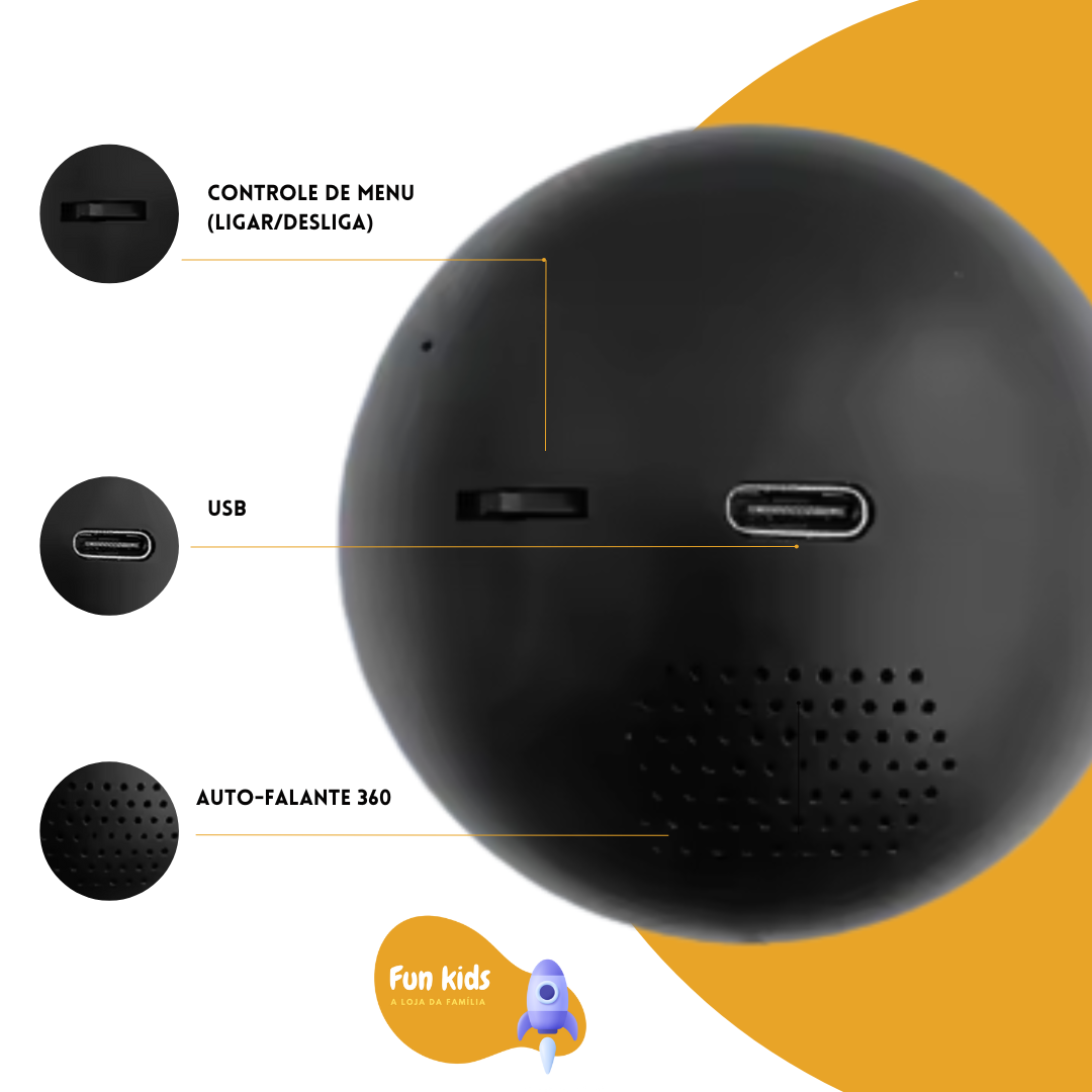 Dentro de sua esfera de cristal translúcido, vídeos e fotos são projetados com brilho suave e movimento fluido, criando uma experiência visual envolvente e emocionante.