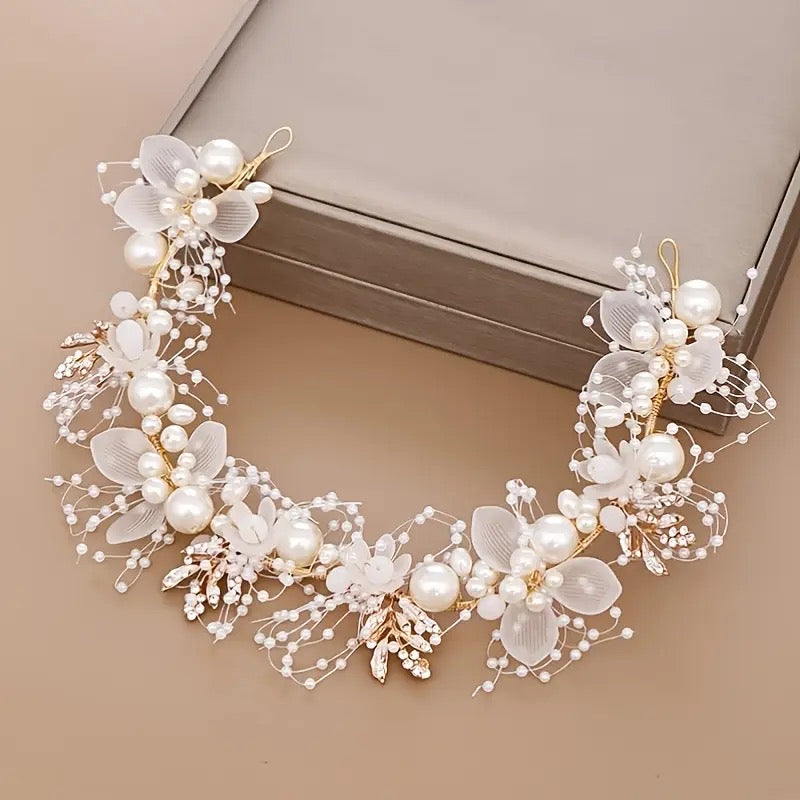 •Produto contém: 1 Tiara de 32,5cm de diâmetro .•Material: Pérola simulada, liga de zinco e strass